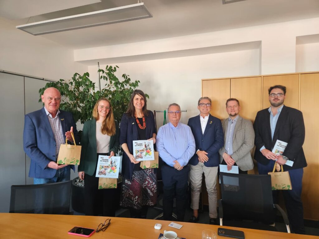 Nesta sexta-feira (6), a comitiva do Sistema Fecomércio RN, Sesc e Senac encerrou sua missão internacional na Europa com uma agenda estratégica em Munique, na Alemanha. A programação foi marcada por reuniões na sede da BBW – Bildungswerk der Bayerischen Wirtschaft (Centro de Formação da Economia da Baviera), uma das principais instituições alemãs de formação profissional e articulação de projetos internacionais. O grupo discutiu parcerias voltadas à inovação, educação profissional, cooperação internacional e desenvolvimento sustentável.