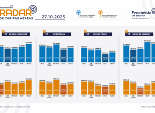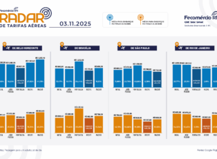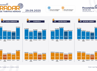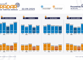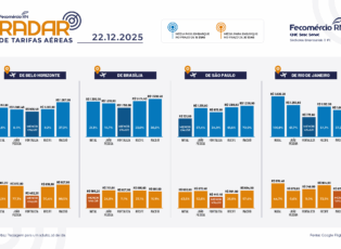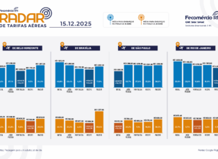 O Radar de Tarifas Aéreas é um apanhado semanal dos valores das passagens dos voos que partem dos principais polos emissores de turistas do Brasil, que chegam a Natal e também às capitais dos estados vizinhos, e que são concorrentes diretos do nosso turismo. O levantamento realizado pela Diretoria de Inovação e Competitividade da Fecomércio, mostra os preços das passagens partindo de Brasília, Belo Horizonte, Rio de Janeiro e São Paulo, chegando a Natal, João Pessoa, Recife e Fortaleza, com embarque dentro de 15 dias e dentro de 30 dias.